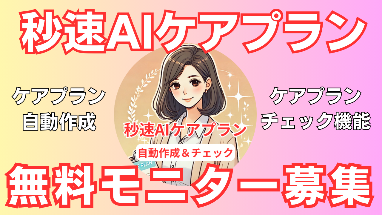 秒速AIケアプランは、ケアプラン作成に関する業務を支援し、自動作成やチェック機能を通じて、日々の業務の効率化と質の向上を後押しすることを目的とした取り組みです。